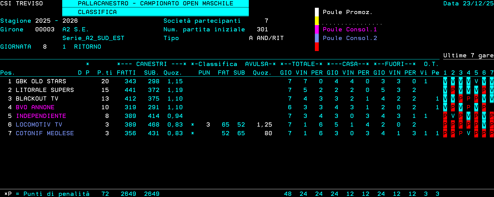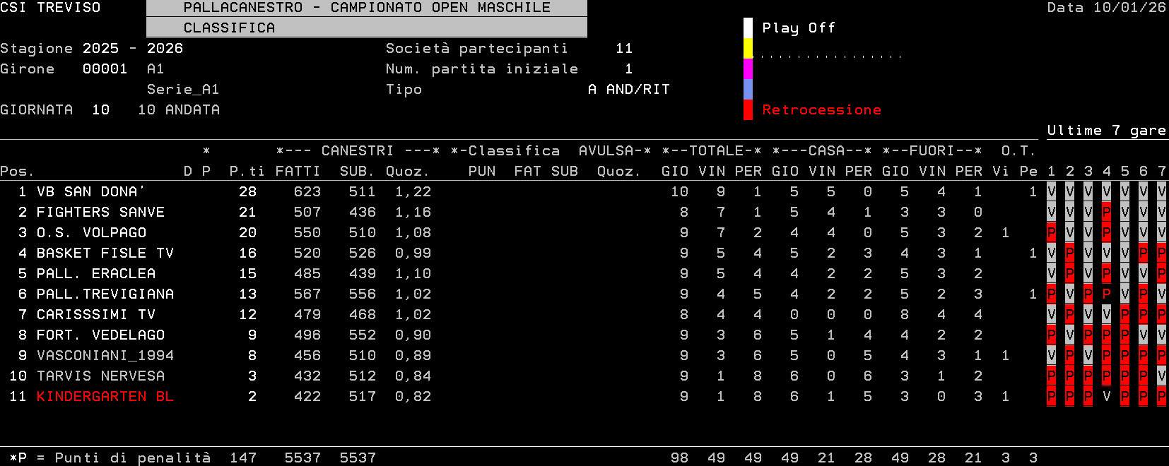 PALLACANESTRO > CLASSIFICHE E RISULTATI
