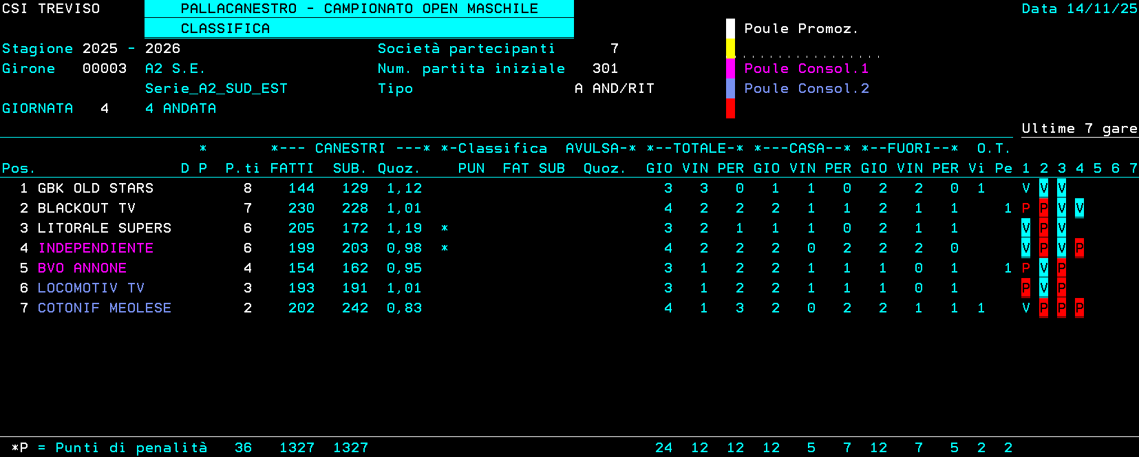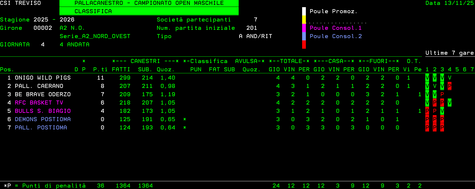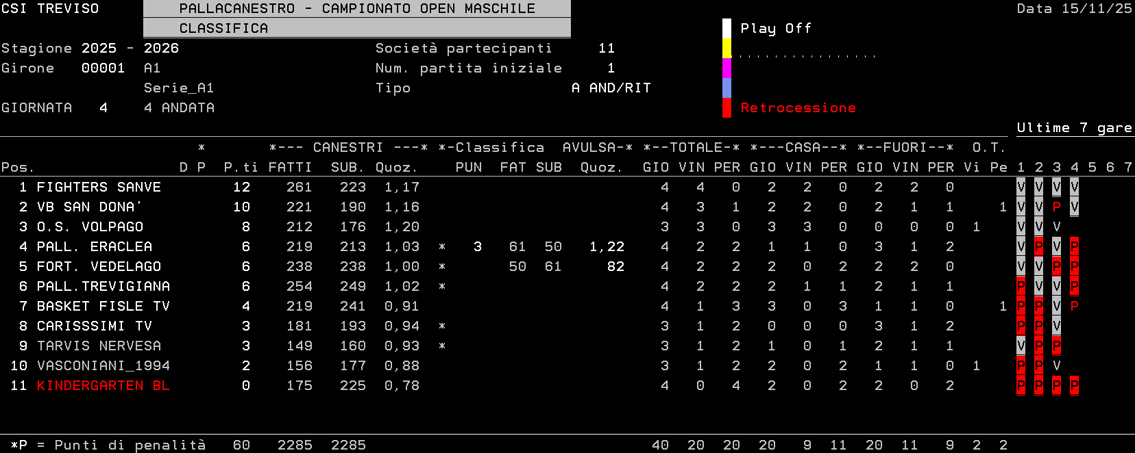 PALLACANESTRO > CLASSIFICHE E RISULTATI